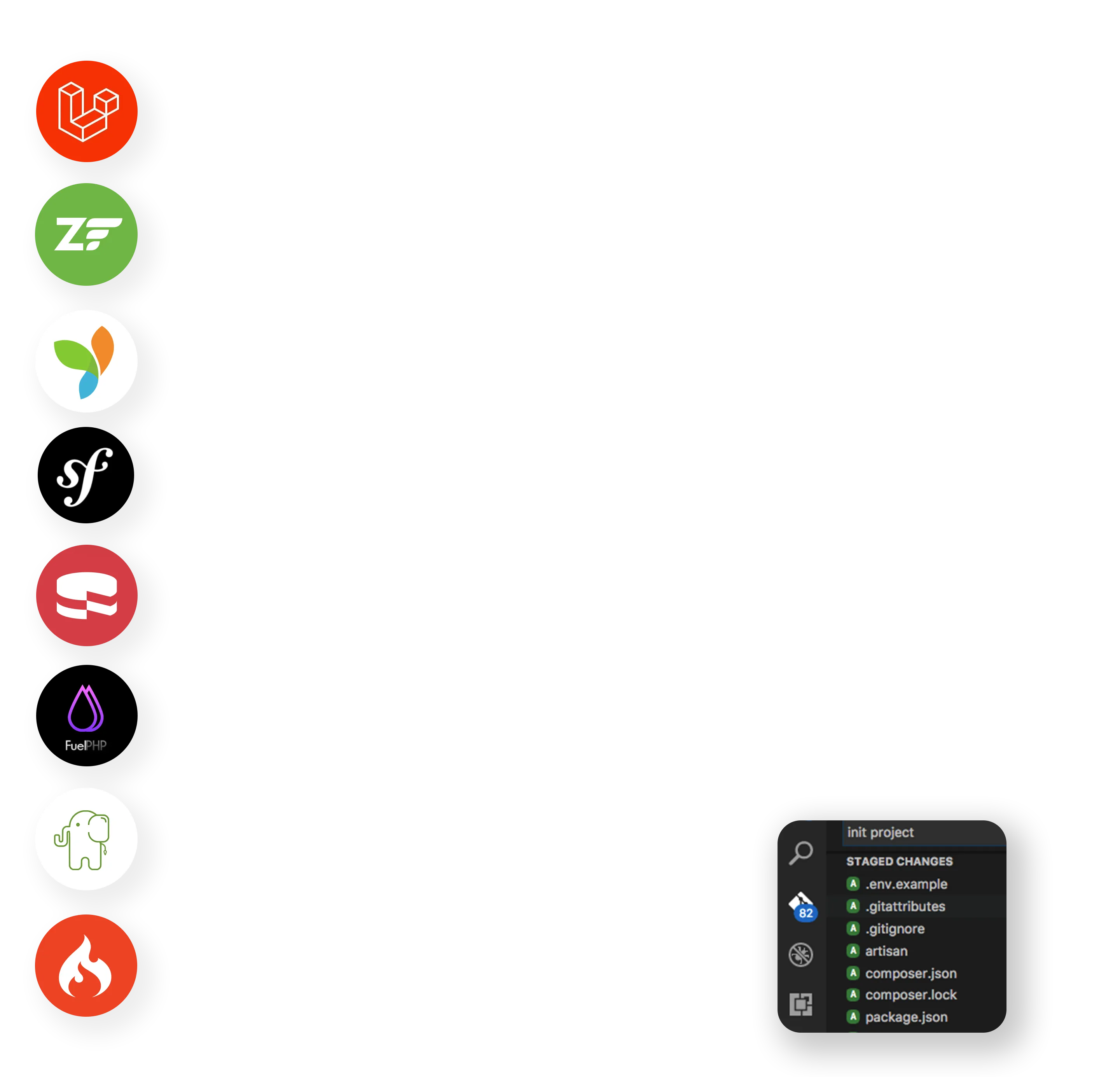 พร้อมด้วยเฟรมเวิร์ก เช่น Laravel, CodeIgniter และ Symfony