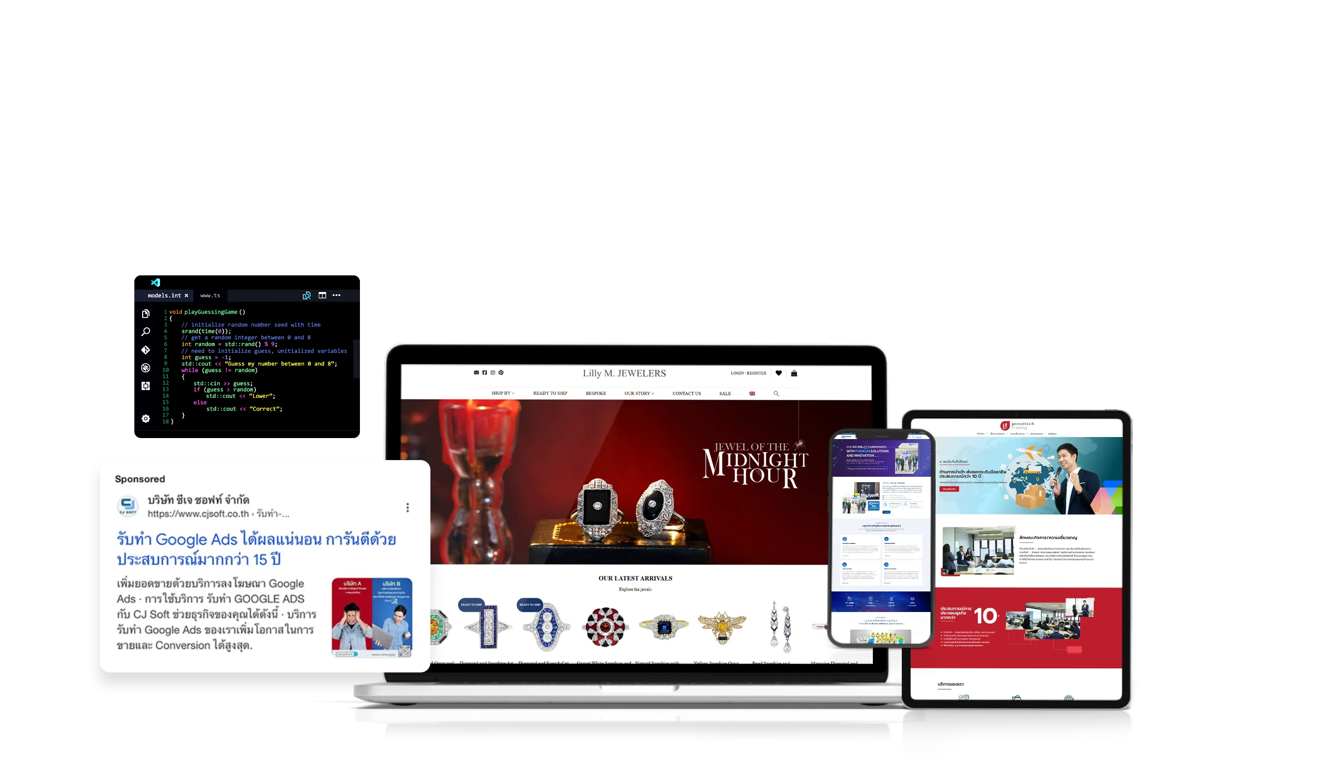 เราพร้อมให้บริการตั้งแต่การสร้างเว็บไซต์ พัฒนาโปรแกรม จนถึงการโปรโมตผ่าน Google Ads และ SEO — ครบจบในที่เดียว เพื่อให้ธุรกิจของคุณเติบโตในโลกออนไลน์อย่างยั่งยืน