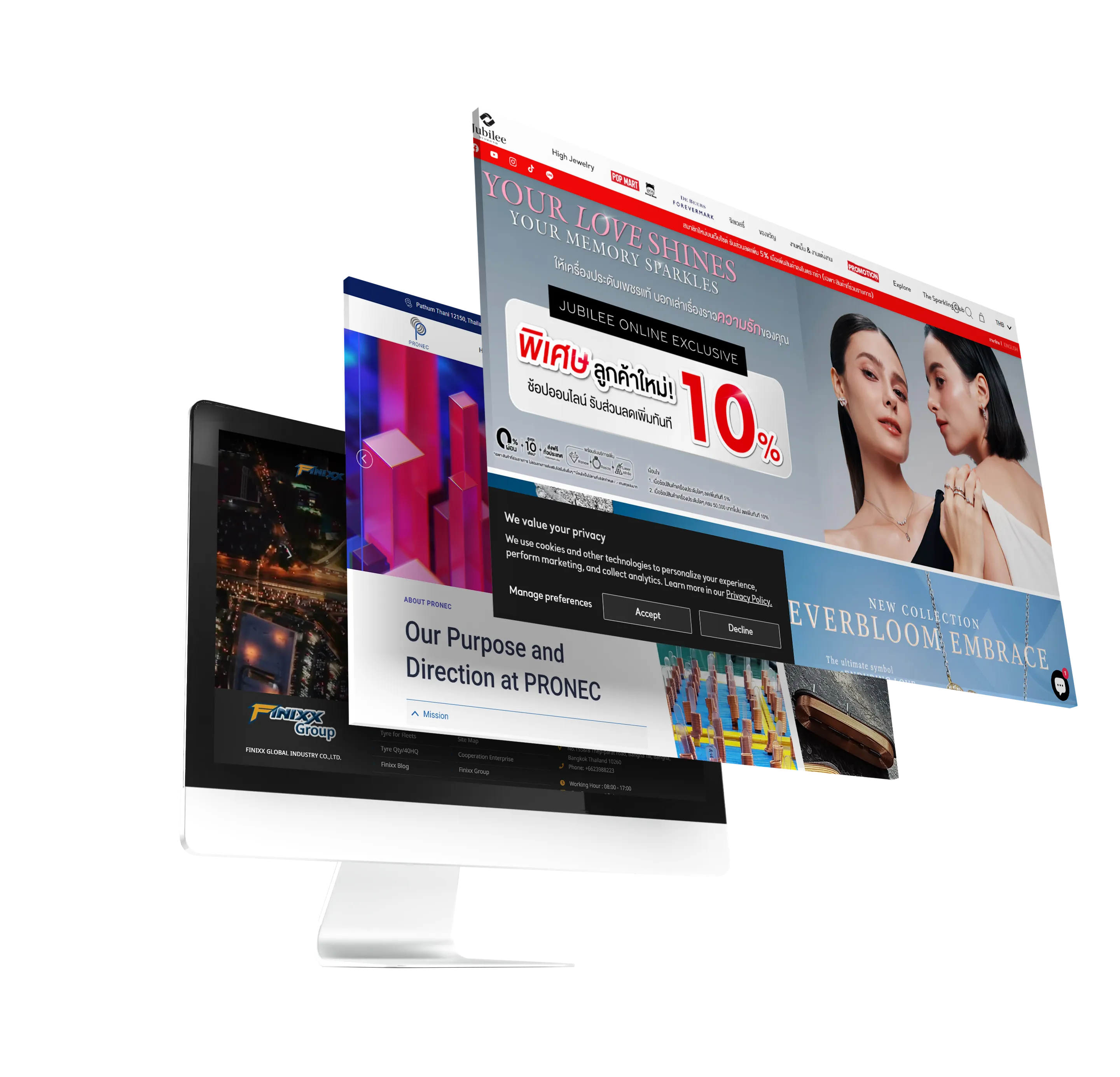 บริษัท ซีเจ ซอฟท์ จำกัด เรามีบริการออกแบบเว็บไซต์ต่างๆ มากมายที่เหมาะแก่ธุรกิจของคุณ ไม่ว่าคุณจะเป็นธุรกิจขนาดเล็ก (SMEs) หรือ บริษัทมหาชนขนาดใหญ่ อีกทั้งเรายังมีประสบการณ์ในการพัฒนาเว็บไซต์หน่วยงานราชการ ดูลูกค้ารับทำเว็บไซต์ของเรา